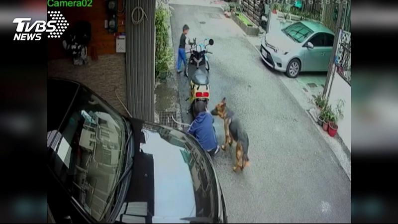 狼狗追人還不是第一次,只見狼狗,突然往巷子內衝,跑到一部摩托車旁,大人蹲在一旁洗車,旁邊的孩子被嚇了一跳,狼狗被大人訓斥後,才默默離去,但家長擔心怕有一天孩子會受傷。