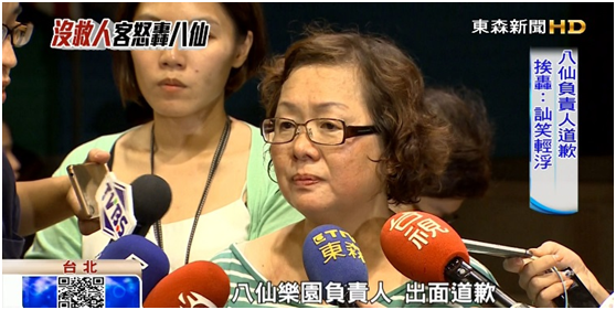 暫時停止營業,直到所有調查釐清為止,並負起相關的責任。粉塵暴事發第一時間,八仙樂園負責人出面道歉,但是卻被觀眾認為,態度輕浮,誠意不足,通通都把過錯推給承辦場商。有網友PO文,質疑現場滅火器材準備不足,逃生動線混亂,甚至查到這名負責人,之前也跟顧客有過糾紛。