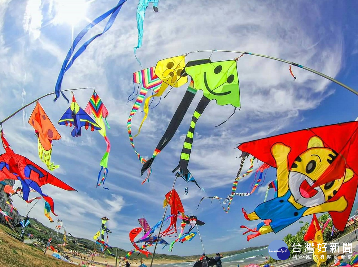 2017新北市國際風箏節1日於石門區白沙灣登場,今年的國際風箏觀摩秀,聚集了超過10個國家20支隊伍來到白沙灣共襄盛舉,超過100位國內外風箏好手同台較勁,國內外風箏好手齊聚一堂,各式風箏在藍天中爭奇鬥艷,新北市長朱立倫也親手放飛主題風箏「寶島之翼-台灣藍鵲」。