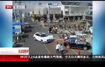 事發於江陰某超市停車場,根據監視器畫面顯示,上午9點左右,一輛白色奧迪緩緩倒車,但駕駛那一側的門卻是開著的,車內也沒有人。仔細一看,原來有一名女子趴在地上,將手伸到車輪下,似乎想抓什麼,接下來奧迪輾到東西,顛簸了一下。