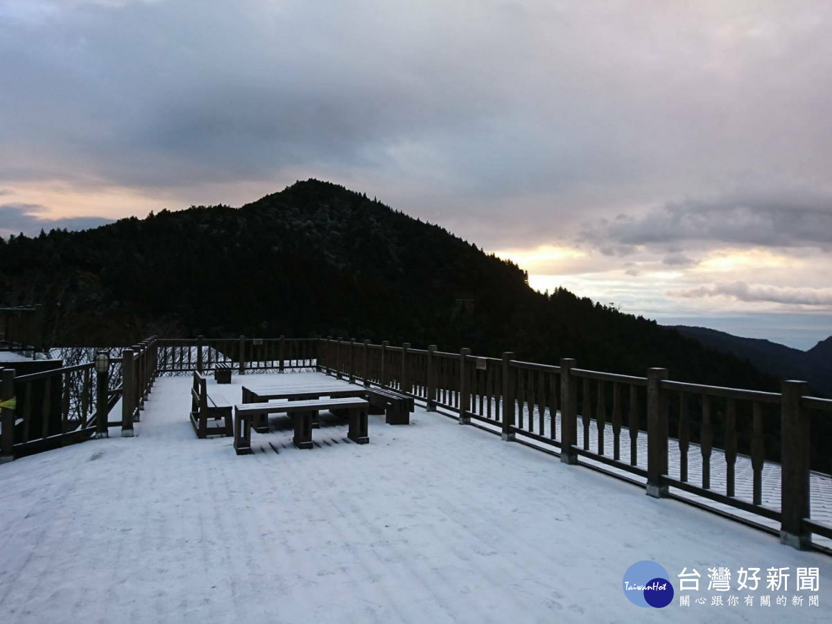 太平山降下今年第一波瑞雪。(圖/太平山國家森林遊樂區提供)