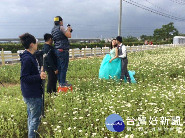 新人至漸層花海拍攝婚紗。