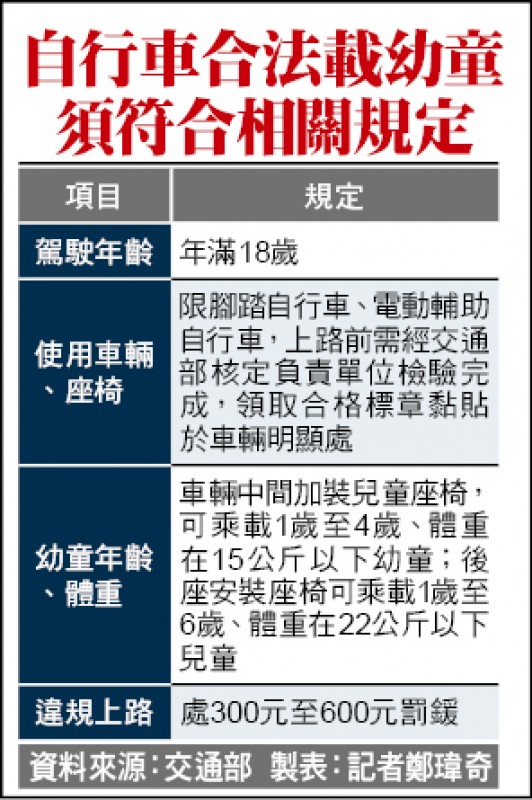 自行車合法載幼童須符合相關規定