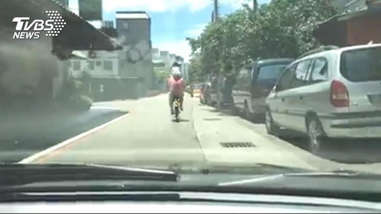 而且,完全沒有保護措施,騎車都已經有點搖搖擺擺,女童似乎沒感覺到可怕,頭部跟著左右擺動。