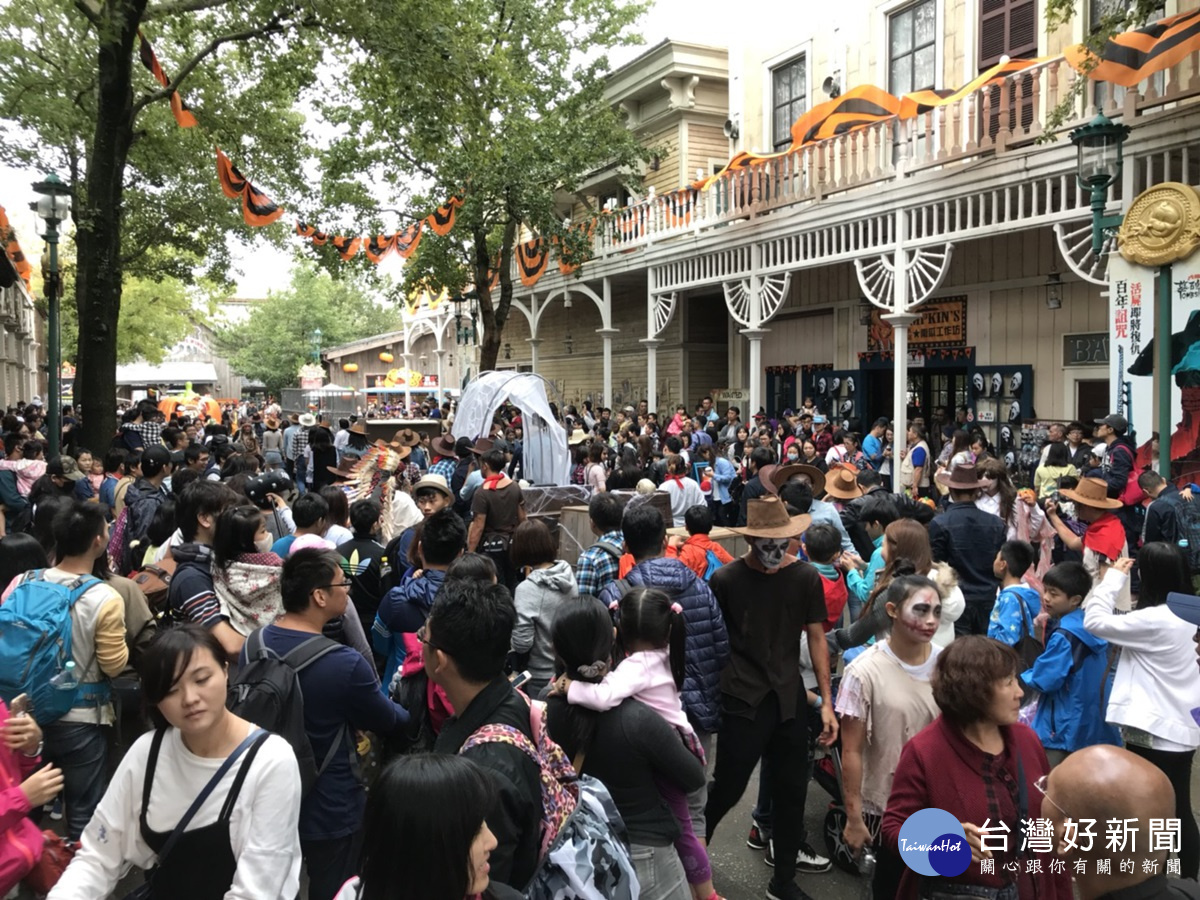 迎接萬聖節熱潮,六福村主題遊樂園打造全台規模最盛大、活動最多元、體驗最完整的萬聖慶典。21日超過1萬人入園遊玩,感受最濃厚的萬聖節氣氛。而六福村萬聖慶典中最受遊客喜愛的活屍大遊行,特別加入上百人陣仗的Swing搖擺舞群,與園區的活屍們一起群屍亂舞。