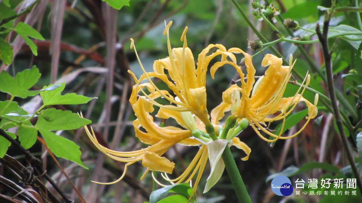 每年9月至11月為金花石蒜的花期,花色呈現金黃色,花瓣向外翻轉,猶如龍爪,因此也有人稱呼它為「龍爪花」。除外型亮眼之外,金花石蒜的生長過程也相當奇特,花謝之後植株葉片才會長出來,到了隔年4、5月間葉片會枯萎脫落,之後進入一段休眠期,到了9月才會抽梗開花,形成了「有花無葉、有葉無花」的特殊景象。