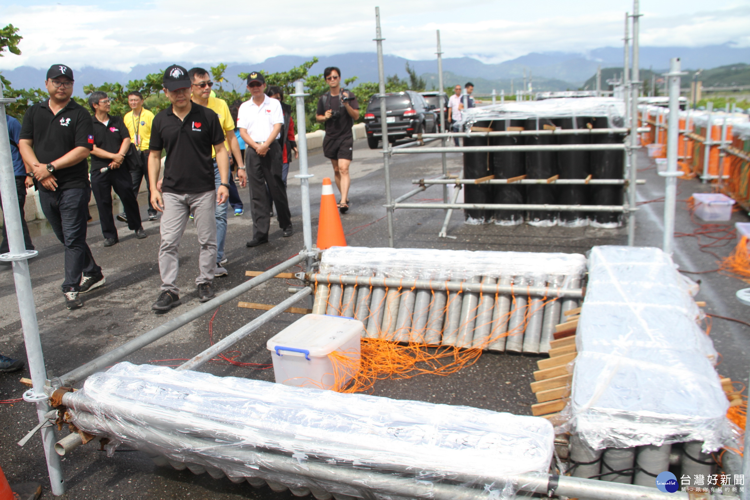 黃健庭在現場視察時,還特別想測試高達2.2公尺的24吋焰火寬度,不過,一人還無法完全環抱。
