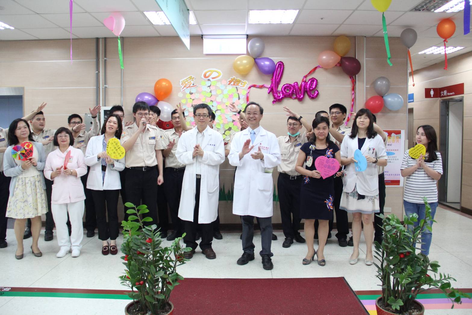 5月8日上午彭家勛院長、王瑞祥副院長及院內ㄧ級女性主管也特別在「愛之樹」上寫下愛之物語,祝福醫院員工母親節快樂,並盛讚媽媽的角色無遠弗屆,媽媽溫潤的手撫慰著我們的心靈,亦如醫療對著病患獻出醫者仁心,
